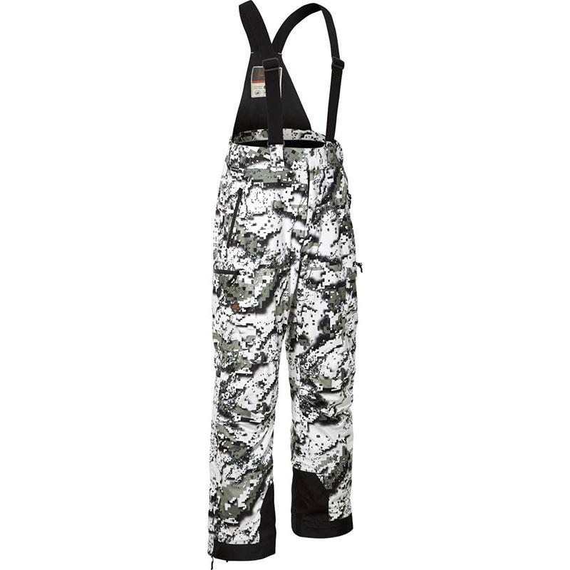 Updated version of our Zero trousers for winter hunting. DESOLVE® Zero camouflage pattern for excellent coverage in snowy or frosted conditions. Windproof and waterproof with our COVERTEX® 100 lining. New waist construction with removable braces. Loose fit to give you space to wear a warm base layer or extra trousers. Ventilation in the side seams. Two front pockets with zipper and two bellows pockets on the legs. The opening of the legs is adjustable and can also be opened with a zipper at the side seam. The trousers feature an inner cuff in the leg opening to prevent snow from coming in.