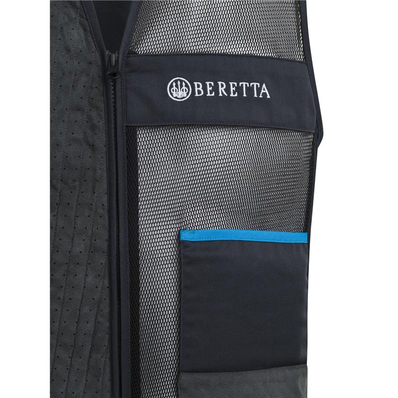 Features: • Microsuede shoulder strap with laser-perforated details • Double slider YKK zipper • Expandable front pockets • Elastic and breathable 3D mesh on the front and back • Elastic fabric inserts on the hips and back • Bib holder attachment at the back • Earplug / towel holder on both sides • Beretta logo printed on the chest • Fit: slim