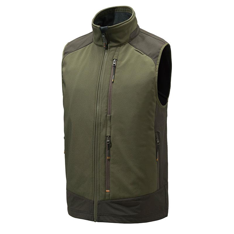 Butte Softshell men's hunting vest, lightweight, stretchy and breathable, designed for outdoor activities. The vest is windproof and waterproof, and also features abrasion-resistant inserts in the most exposed areas. Wind-resistant, water-resistant and breathable thanks to the membrane BWR – Beretta Wind Resistant – combined with a soft microfleece that lines the interior. The outer material has been finished with the DWR water-repellent treatment – « Durable Water Repellent ». The vest can be worn with the 4 Way Stretch EVO trousers, the 4 Way Stretch Pro trousers or the Bymark trousers.
