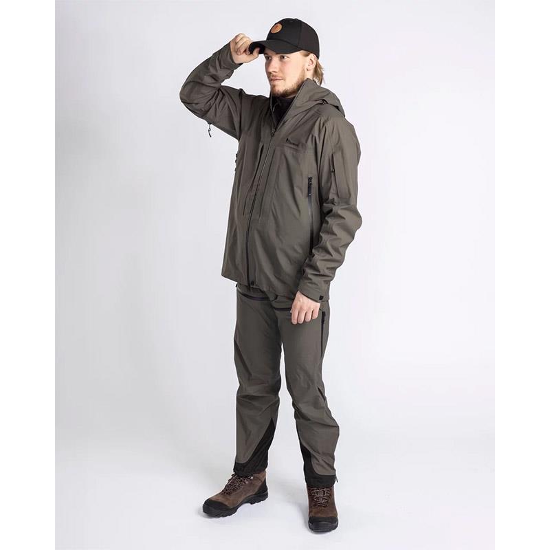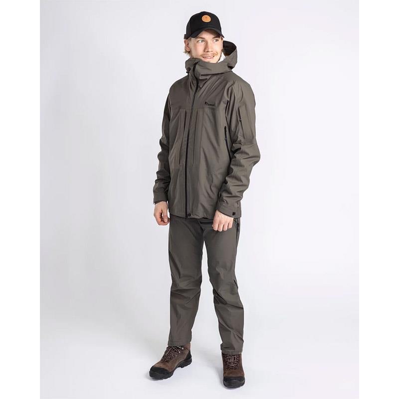 This is a jacket for outdoor enthusiasts, environmental-conscious who appreciate functionality, comfort and quality, intended for use in all hikes and daily adventures in changing weather. The jacket has been developed using high-quality fabrics and zippers to last for many years. It is a unique product made from a completely new material created in close collaboration with the fabric supplier. During the development, the focus was on creating a more environmentally-friendly garment in highly breathable waterproof fabric.