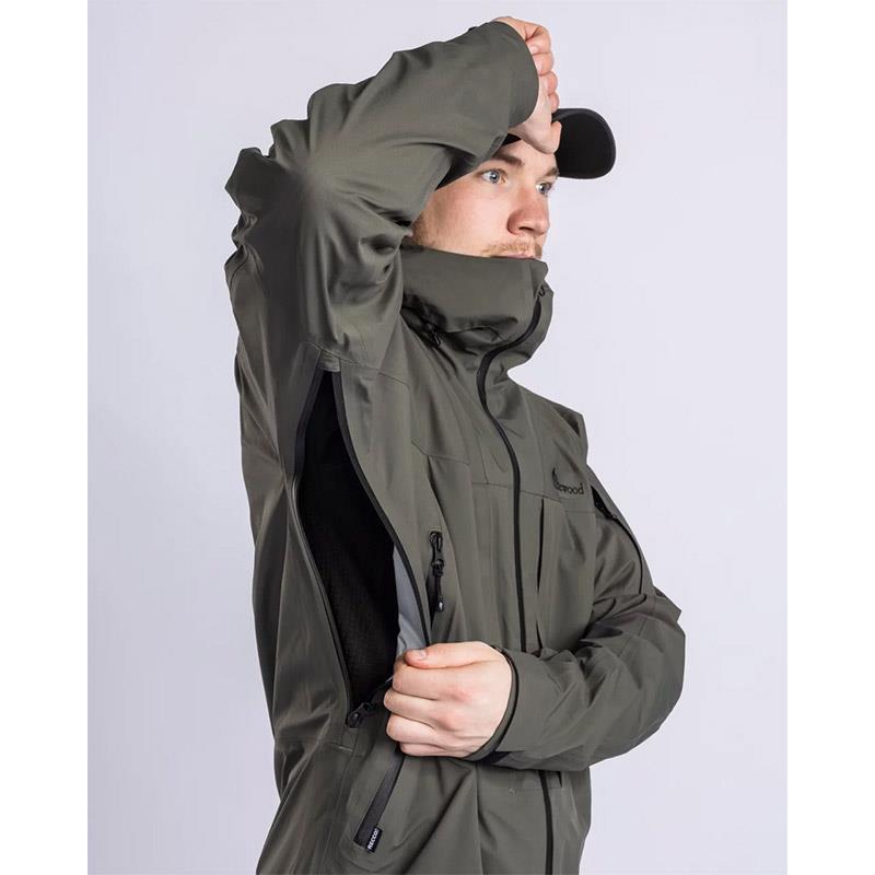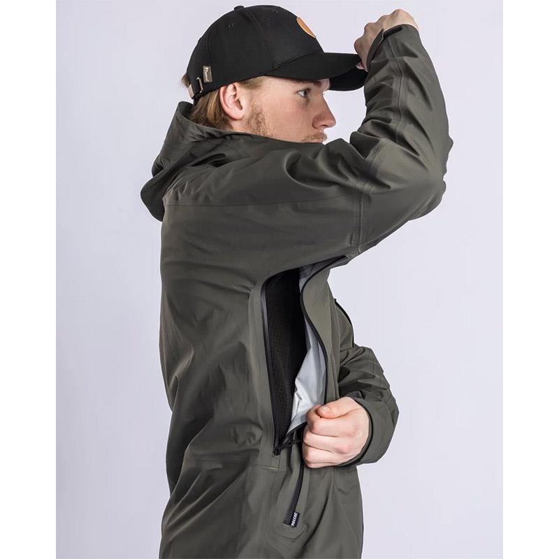 The benefits of this premium product are numerous. This is a waterproof jacket with sealed seams and high breathability, perfect for hiking, trekking or other activities with a higher activity level. It is lightweight, making it ideal for packing into the backpack. Designed for intense activity, the fabric and its mechanical stretch offer good comfort during all kinds of movements, while the jacket's construction offers an exceptional fit. The elevated pockets and the two chest pockets are all easily accessible even when wearing a hiker's backpack with a belt. The jacket also has a sleeve pocket with a zipper. The long underarm ventilation zip openings keep you comfortable during the most intense hiking activities and weather changes. The jacket has an adjustable hood with an integrated brim that protects from the rain, and YKK Aquaguard® zippers that are water repellent, so water won't penetrate. The bottom can be adjusted with a drawstring and the cuffs with hooks and loops for a tighter fit and to prevent moisture from entering. The bottom and the hood feature integrated Cohaesive™ cord locks that nicely conceal the drawstrings.