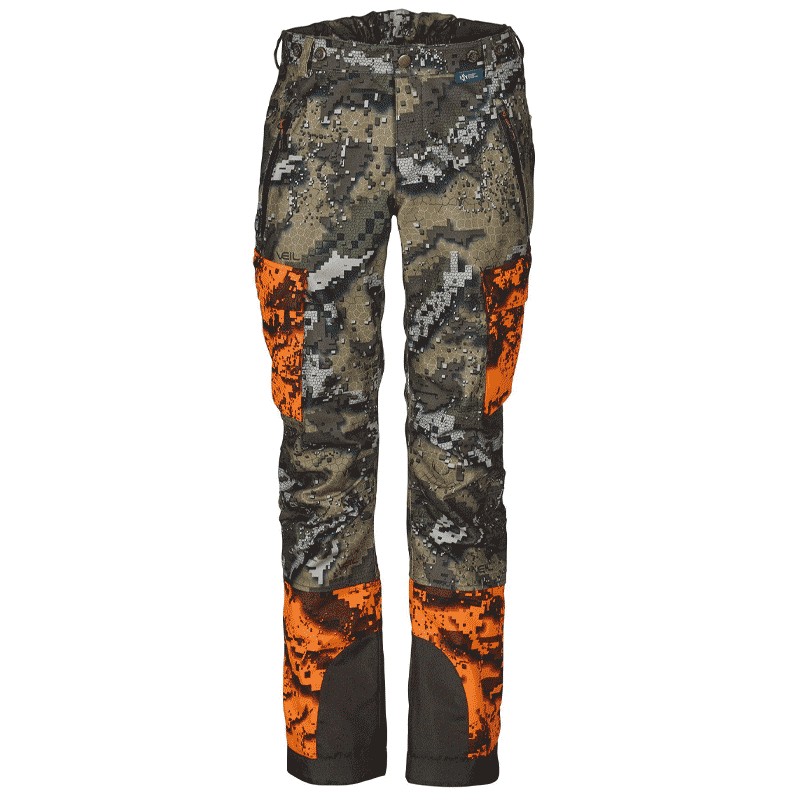 The trousers have a regular fit and are available in three colours. Two of these colours are our unique DESOLVE® Fire and DESOLVE® Veil camouflage patterns. These patterns are created to break up your silhouette and blend into animals' field of vision. Thanks to the contrasts and irregular shapes, DESOLVE® allows animals to spot you less easily, even in open environments.