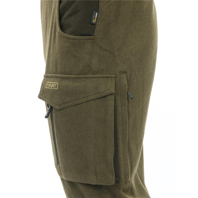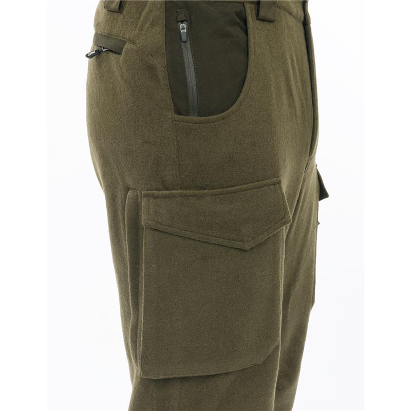 The innovative HLS (Hook & Loop System) allows for easy tightening of the trouser leg bottoms and can be easily removed if not necessary. HRT+ water repellent treatment.Loden clothes have a rich history and are known for their durability and functionality. Originating from the alpine regions of Austria, loden is a type of dense, water-resistant wool fabric, traditionally earth green in colour.The fabric is made from loosely woven wool, then subjected to a process called "shearing".