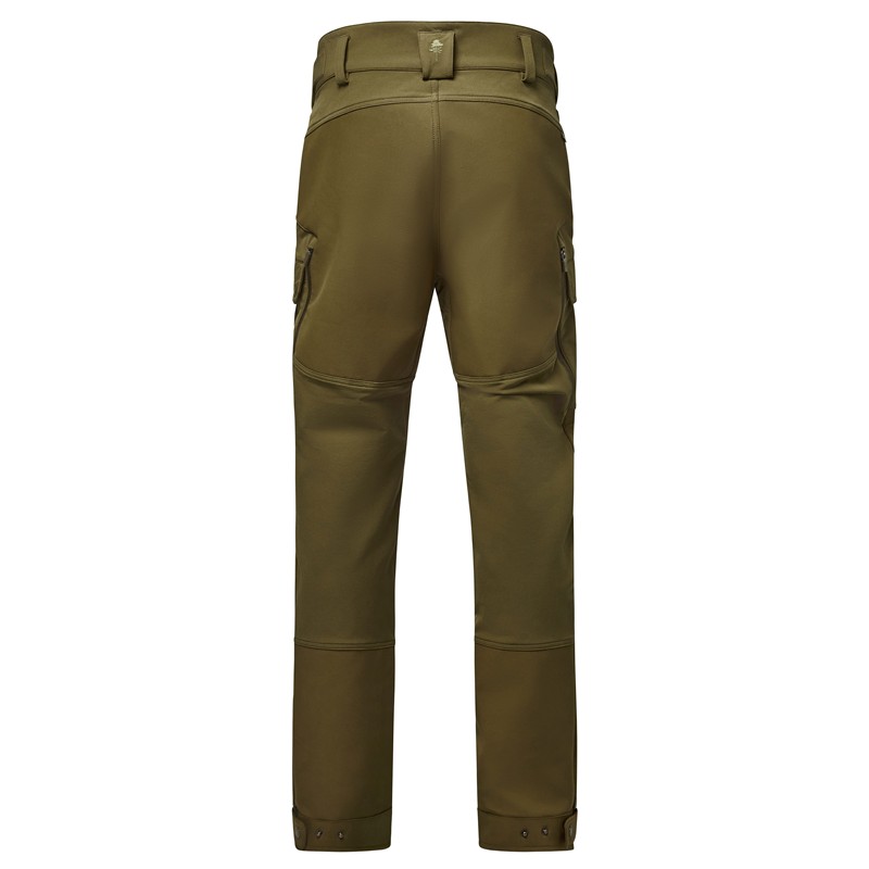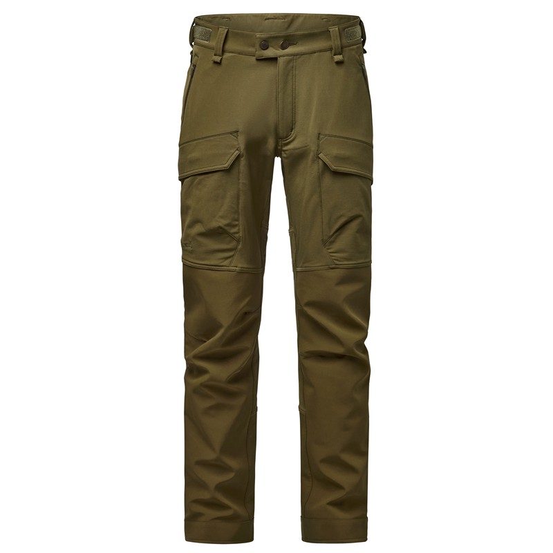 The fabric benefits from a PFC-free water-repellent treatment. The trousers are equipped with large side zipped pockets with flaps, zipped hand rest pockets and offer a regular fit. The waist is adjustable using self-gripping strips, eliminating the need for a belt. The leg bottoms are equipped with zips and buttons to facilitate the slipping on of boots. A D-ring allows you to attach a knife or other essential accessories. Ideal for climbing into a hunting stand or moving freely through rugged terrain.