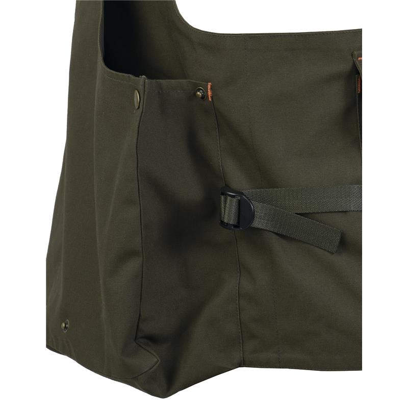 • Large rear game pocket. • Zippered internal rear pocket and hydration pack tubing guide of up to about 3 L (optional). • 2 zipped interior pockets.