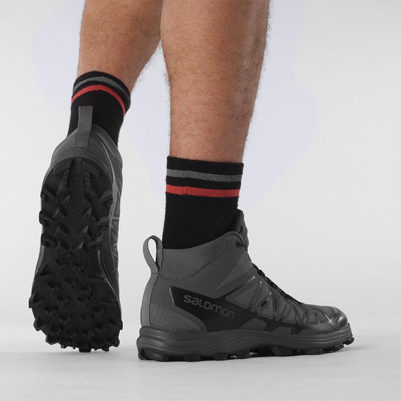 It draws its performance from the design of SALOMON trail shoes, with enhanced resistance for professionals.