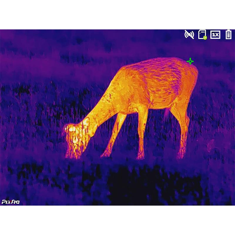- 12 µm Thermal Imaging Sensor A NETD value of <30 mK ensures perfect detail recognition, even in the most difficult weather conditions where thermal contrast is low. Slight differences in temperature in observed objects can be clearly visible in case of heavy rain, dense fog or cold morning, facilitating the recognition and identification of game and its characteristics.