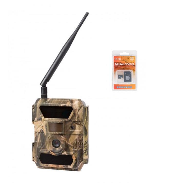 - NUM'AXES multi-operator data SIM card provided: You have a choice between 3 data transmission packages: 20 MB is about 400 photos resolution 640 x 480 pixels 100 MB is about 2,000 photos resolution 640 x 480 pixels 350 MB is about 7,000 photos resolution 640 x 480 pixels • Monthly packages, without commitment, without activation fees • Multi-operator card: the device looks for the network with the strongest signal among the available networks. • For France, the networks sought are Orange, Bouygues Telecom, SFR and FREE Mobile. • The SIM card can be used in many European countries: click here for a list of covered countries and operators • The device can be setup and triggered remotely via a free mobile application (Android/iOS) - Name of the application: NumCam • Sends photos by MMS or email depending on the SIM card used and the settings made (works with 2G and 3G networks) • Upon insertion of the SIM card (standard size), the device automatically detects the mobile operator and provides the corresponding sending parameters (only if the operator is part of the list of operators preprogrammed in the device). • Capture modes: - Photo - Video - Photo + Video (a photo and a video are taken each time the device is triggered) • Photo resolution: 5 MP | 8 MP | 12 MP • Video resolution: VGA | HD 720P | FULL HD 1080P • Video duration: from 5 to 59 seconds | Default duration: 10 seconds • Audio recording in videos: programmable (ON | OFF) • Adjustable Night Mode: - Maximum Range: this setting provides longer exposure to extend the range of the infrared flash for better night vision (lower image quality) - Minimal Blur: this setting provides shorter exposure to minimise blur caused by movement for better image quality (reduced infrared flash range) - Balanced: this setting provides a combination of the previous two options • PIR detection mode: the device takes photos and/or videos when the PIR sensor (motion detector) detects activity in the area it covers • Time Lapse mode: photos and/or videos are automatically taken at regular time intervals • Programmable operating time range • Marking on photos and videos: time, date, temperature, lunar phase, device serial number, battery charge level • Memory: SD card or micro SD with adapter from 4 GB to 32 GB, minimum class 10 (not included). You can obtain micro SD cards with adapter at any time on this website (8 GB, 16 GB or 32 GB). • Loop recording on the memory card: • User programmable: ON | OFF • When the memory card is full, the camera records new photos/videos by deleting the oldest photos/videos. • Reliable and efficient • Warranty: 2 years • Designed to withstand the elements (IP66) • Trigger speed: 0.4 second • Ergonomics of the PIE1023 photo trap • Weight: 661 g (with batteries) • Dimensions: 148 x 117 x 78 mm • Power supply: 12 AA alkaline batteries or 12 rechargeable AA Ni-MH batteries (not included) - You can get these batteries at any time on this website. • Optional external power source: power block, solar panel • 2 inch (~ 5 cm) TFT colour LCD screen • USB 2.0 port for file downloads