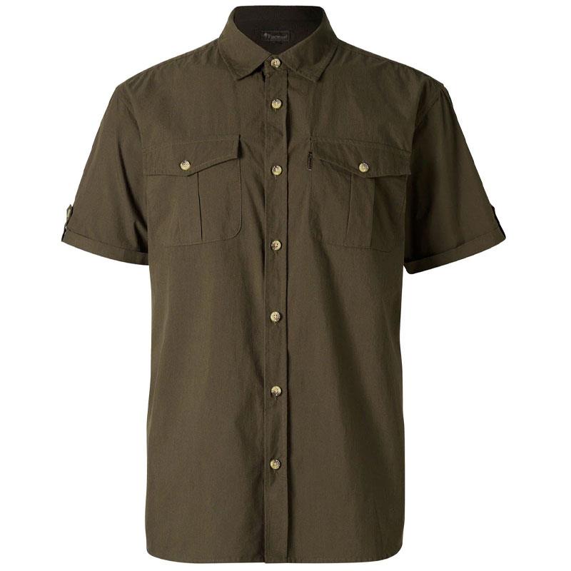 The short-sleeved Safari shirt for men is ideal for hot summer days, whether you're active or relaxed. Made from pre-washed fabric, it offers softness and comfort while providing excellent breathability to keep you cool. Its classic design includes two practical chest pockets with buttons. This shirt is ideal for the office, a barbecue or a walk in the forest, at home or outside.
