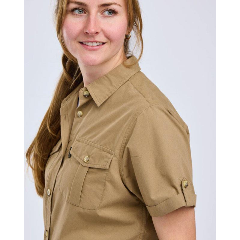 The short-sleeved Safari shirt for women is crafted in a pre-washed fabric for added softness and breathability, keeping you cool in warm weather. Its elegant design is enhanced with two practical buttoned chest pockets. With its durable quality and feminine cut, this shirt will become a staple of your wardrobe, perfect for work as well as outdoor adventures, at home and abroad.