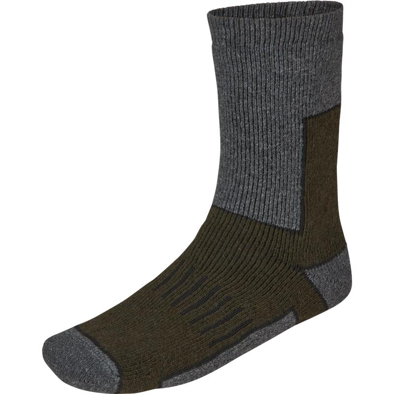 The Field Thermo Socks offer warmth and durability to hunters in a two-pair package. Made from a sturdy blend of polyester, acrylic, and wool, these socks come with a thick sponge lining for excellent insulation. With a flat toe seam to prevent irritation, arch support for comfort, and a compression band to keep them securely in place, the Field Thermo Socks are designed to keep your feet warm and comfortable for the duration of the hunt.