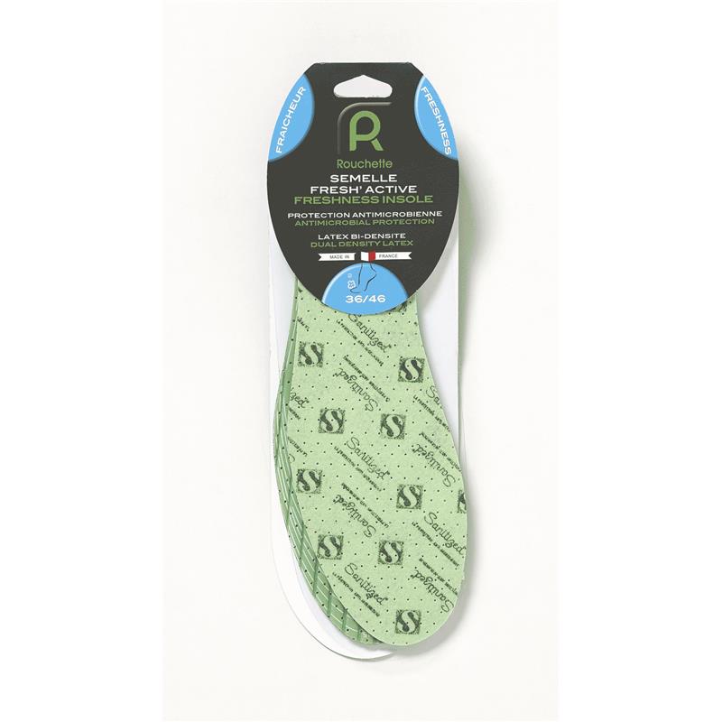 Sole combining antimicrobial protection and bi-density latex for excellent comfort.
