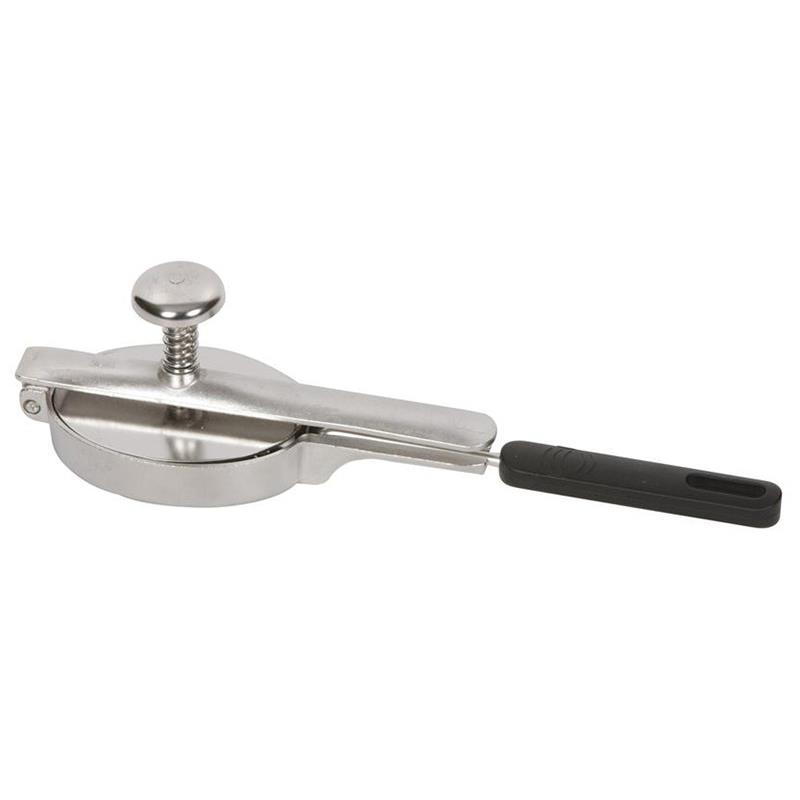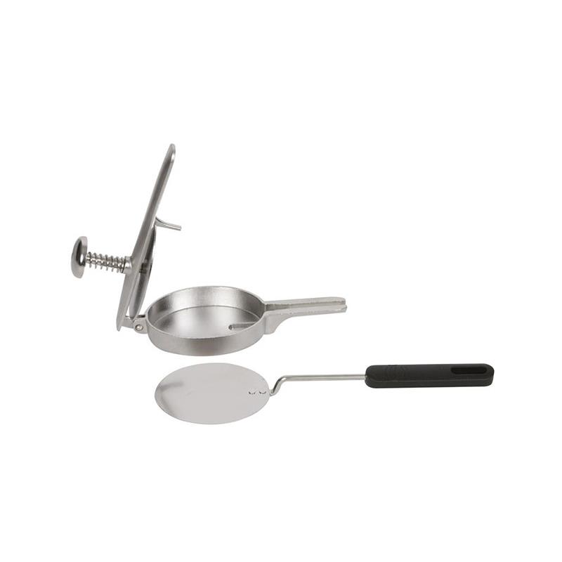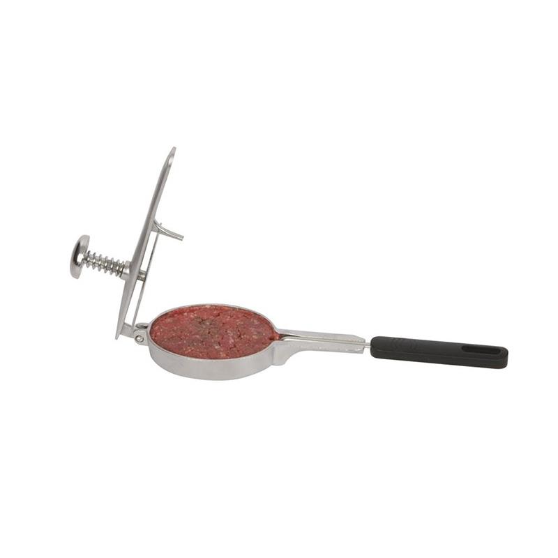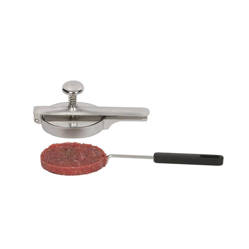 Oval press with stainless steel palette for minced steak. Place minced meat in the device and press.