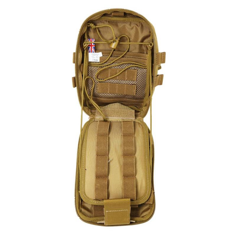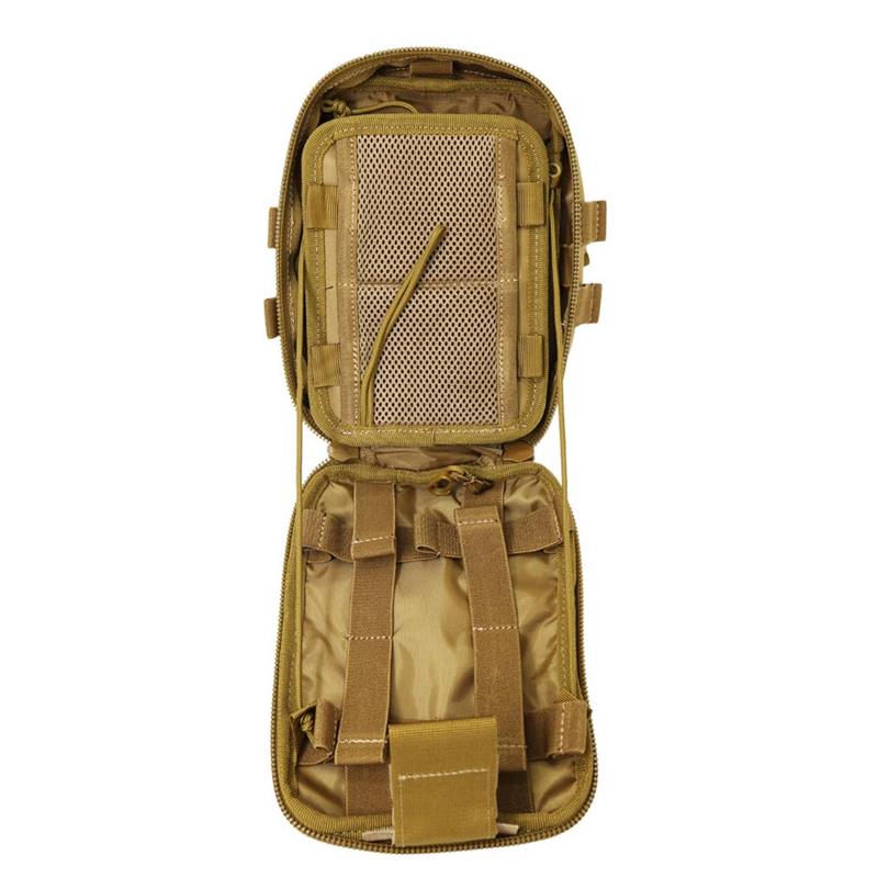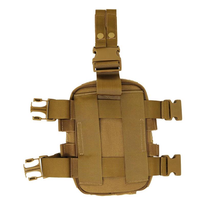 Features: • Thigh pouch for specialist • Integrated pocket cover • Attachment to the belt or on 2 MOLLE loops of the belt • De-clipable belt attachment • 3 rows of MOLLE pass on the front • Elastic bands on the sides • Internal cord to adjust the opening (180° max) • Retractable quick release tag • Removable internal plate • Patch location patronymic band on top • 100% nylon and YKK® zips • Colored pulls • Capacity: approx. 2 L • Dimensions: 24 x 17 x 8 cm • Weight: approx. 611 g • Color: coyote