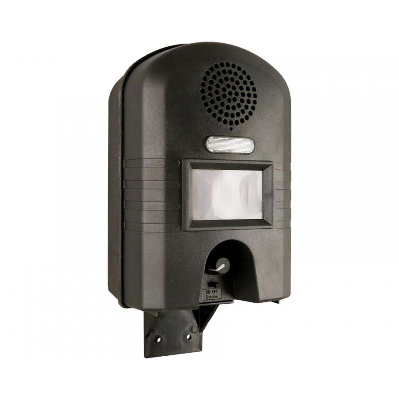 Up to 200 m², Ultrasound + flash! Protect your garden from the behaviour of cats, dogs or other pests that come to do their needs, vandalize the flowerbeds, tear up your trash cans, Ultrasonic repellents that trigger thanks to an infrared detector (up to 16 m), Adjustable frequencies depending on the animals to scare away, detection angle 90°, Requires 4 LR20 batteries (not provided), Dimensions: 12 x 17.5 x 8 cm.