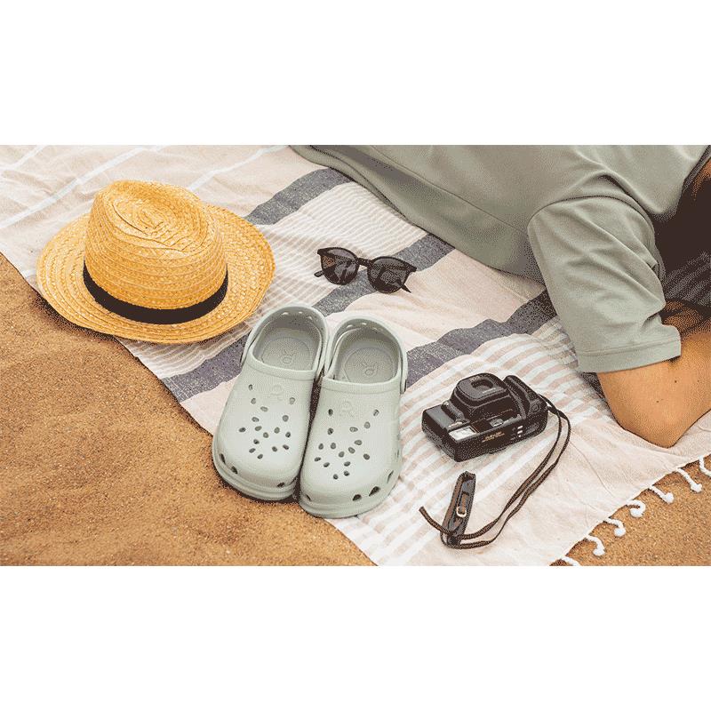 ECO-RESPONSIBLE The clog is made from EVA and BLOOM, a blend based on algae, which enhances the longevity of the product. By harvesting toxic algae from the aquatic environment, it helps to reduce the quantity of synthetic materials used in manufacturing, while also purifying the water and air.