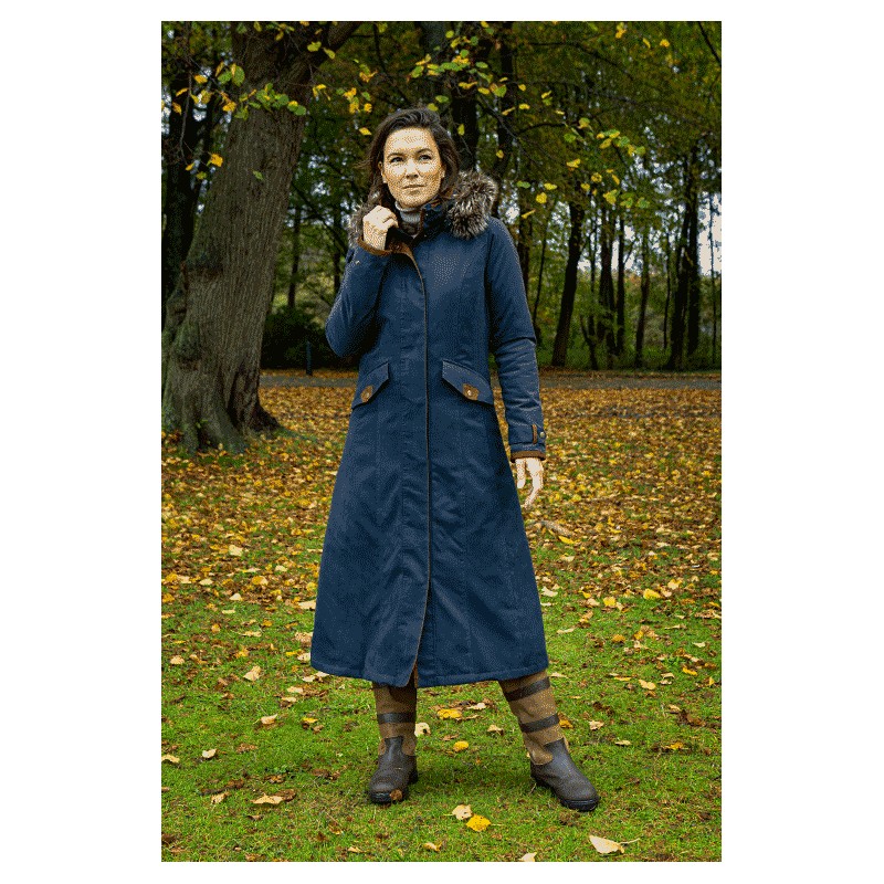 The Kensington warm has all the features of the standard Kensington, but the entire coat has been padded. The removable padded hood is equipped with a removable faux fur. Back length: 120 cm