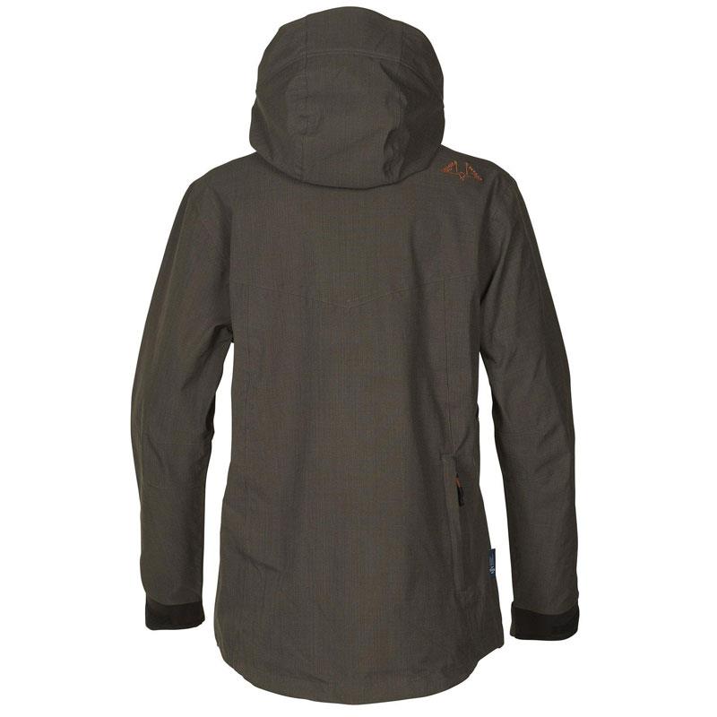 Hunting jacket for women made of soft and lightweight polyester. The jacket is equipped with two radio pockets, a removable hood and two front pockets. Windproof and waterproof with NEONORDIC® 100. This hunting jacket also comes with a back pocket. Suitable for most types of hunting.