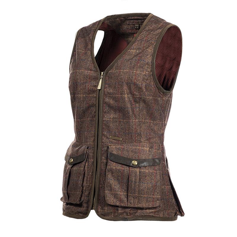 Our printed tweed on this item has everything to please. This garment is both traditional and practical. It has two large lower pockets with magnetic flap, a detachable treat pocket, and a very large open game pocket.