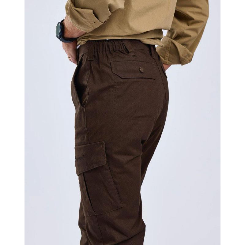 The Finnveden outdoor trousers are a versatile women's trouser, featuring a waxed finish and water-repellent properties. Made from stretchy TC fabric for extra comfort, it features an elasticated waist for a perfect fit. It is equipped with open hand pockets, a zipped pocket on the leg and a bellows pocket with flap and popper buttons. Need more length? Simply open the hem to extend the trousers by 5 cm if necessary.