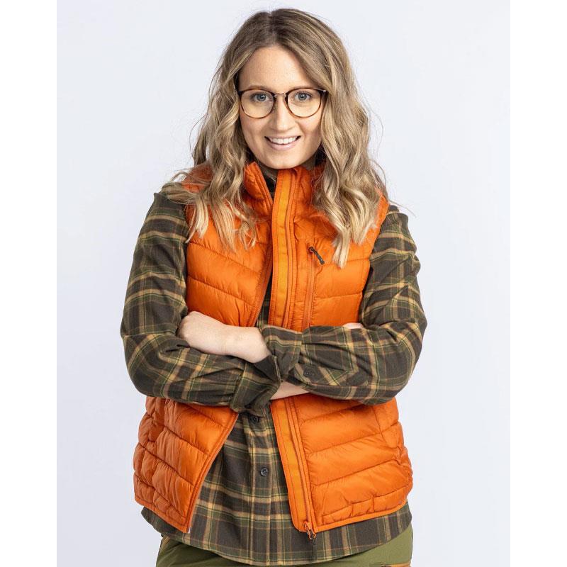 The Abisko insulating vest for women is a lightweight, windproof and slightly water-repellent vest. Its polyester filling is made from recycled PET bottles and blown into the channels, like down, but is a more ecological option offering the same thermal properties. Incredibly soft and flexible, this vest can be worn both as an outer layer and as an additional layer under a jacket. It has two hand pockets and a chest pocket, all zipped.