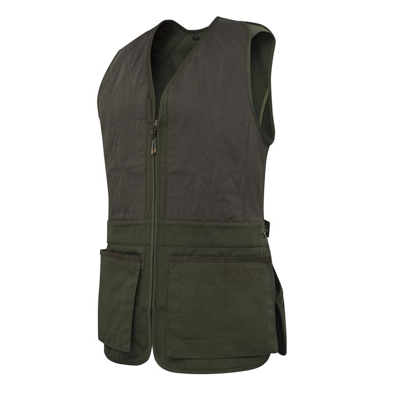 Features: • Cotton shoulder straps, padded • Central YKK zipper. • Pocket compatible with "Beretta Recoil Reducer EVO" (not included) • Spacious front pockets with gussets and microfiber reinforcements • Elastic inserts at the hips • Waist adjustment with snap buttons • System for hanging headphones or a towel on the side • Double-entry rear pocket with microfiber reinforcements • Embroidered Beretta logo • Cut: straight