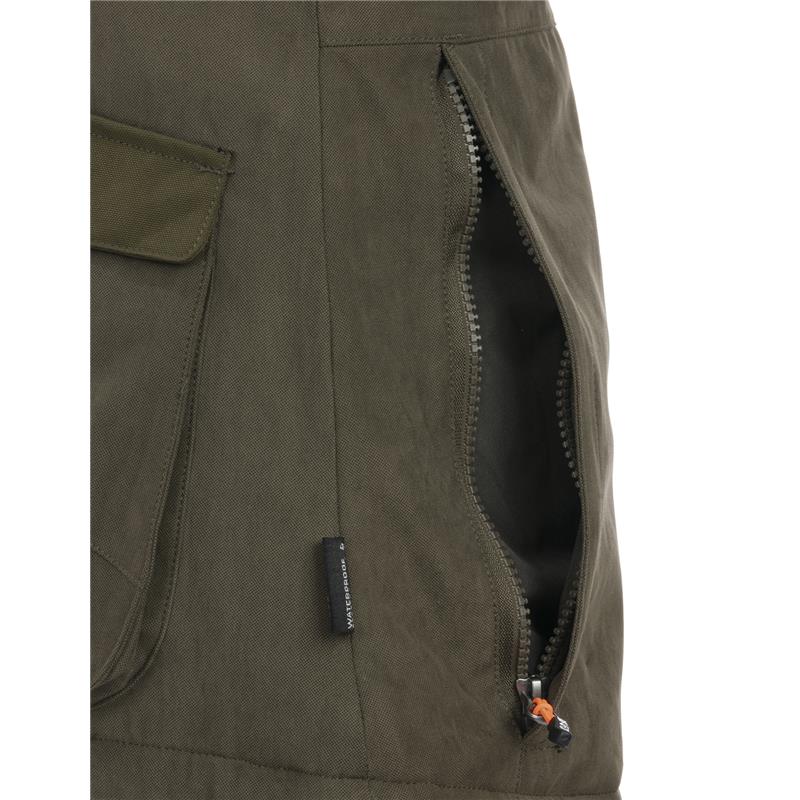 • Radio/GPS and mobile pockets are equipped with an inner multimedia port for headphones (with loop to lead them towards the collar). • The lower cargo pockets at the front further increase storage capacity. • Rear zipped game pocket. • Detachable adjustable hood with zip. • Inner chest pocket with zip and a mesh pocket for the hood when it is removed. • High waterproof (10000 mm) and breathability (10,000 g/m2).