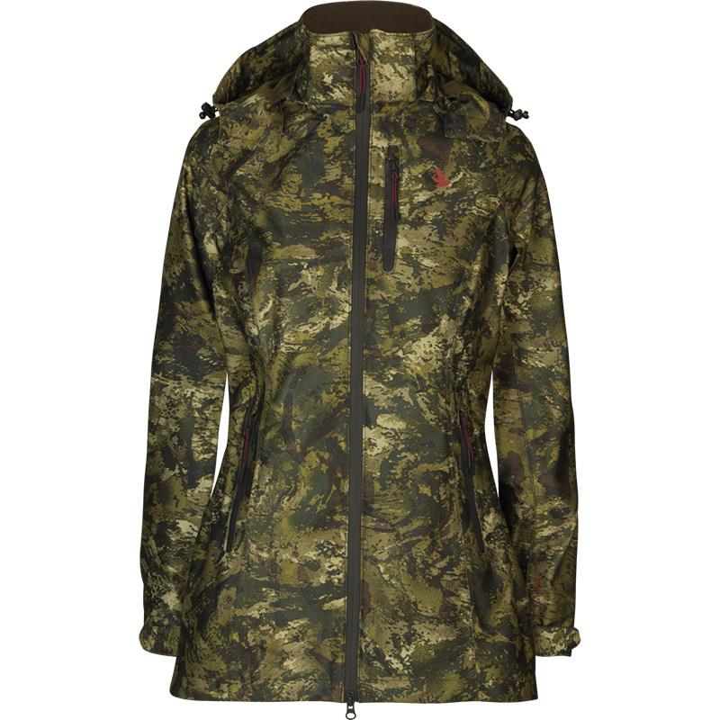 The Avail Camo Women jacket: Elegant comfort that blends into nature. This jacket, with INVIS® camouflage, is designed for the female silhouette. Stay dry and hunt longer thanks to PFC-free SEETEX® weather protection.