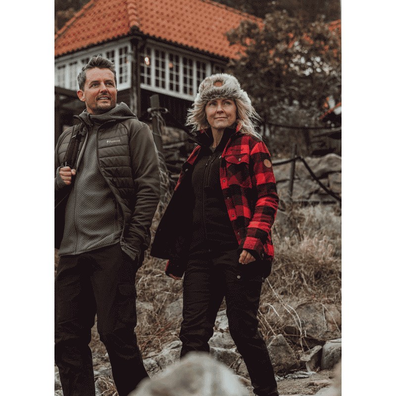 Our classic Canadian shirt is finally available for women. This is a comfortable flannel shirt in a blend of soft wool. It is padded for extra warmth and can be worn both as a jacket and as an intermediate layer. The shirt has snap buttons and the cuffs can be adjusted to create a tighter fit around the wrists. It has two open pockets for hands and two breast pockets with snap buttons.