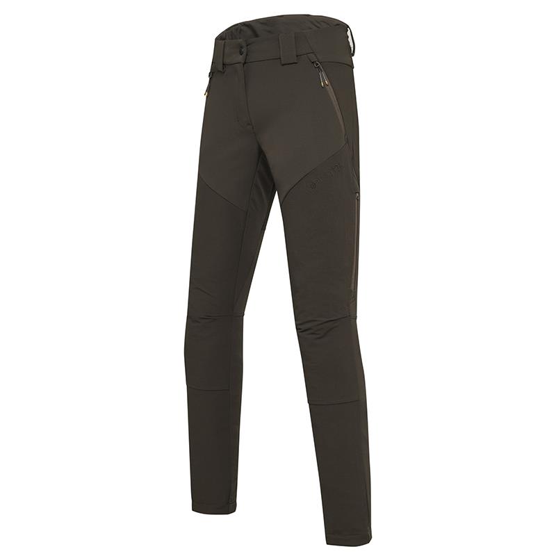 Women's hunting trousers 4 Way Stretch, suitable for outdoor activities in autumn/winter. The trousers are extremely elastic with anti-abrasion inserts on the important areas. The material is stretchy in 4 directions with good abrasion resistance thanks to the protective inserts on the knees and seat. Ventilation zips on the outside of the leg to avoid overheating and ensure breathability. The trousers are equipped with an ergonomic waist with high lumbar support for maximum comfort. The trousers can be matched with all the jackets in the collection.