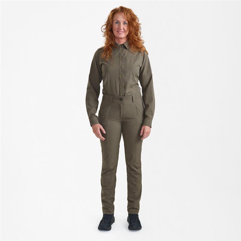 Optimize your summer wardrobe with the Lady Canopy trousers, a must-have for outdoor activities. These trousers provide lightweight comfort, exceptional breathability, and 4-way stretch for absolute freedom of movement. Highly ventilated and designed for hunting in the summer or outdoor adventures, it perfectly combines functionality and breathability. These trousers ensure increased comfort throughout the day thanks to its elasticated waist, preformed knees and adjustable ankles with straps. The numerous pockets give it great versatility, and the lightweight, breathable, quick-drying Ripstop material ensures optimal comfort. Whether you're traversing the woods or embarking on outdoor excursions, these trousers perfectly combine practicality and comfort, making them the ideal companion for all outdoor activity enthusiasts.