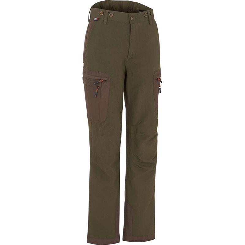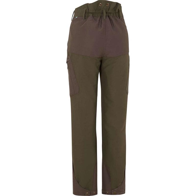 Women's hunting trousers in soft, quiet and lightweight micro polyester fabric. The seat features double-layer fabric for increased durability. Waterproof and windproof with our COVERTEX® 100 Liner. High waist elastic at the back with silicone anti-slip band. Suspenders buttons at the waist. Two spacious front pockets with brushed lining. Two leg pockets with additional pockets for smartphone or GPS tracker. Leg end adjustable by snap buttons.