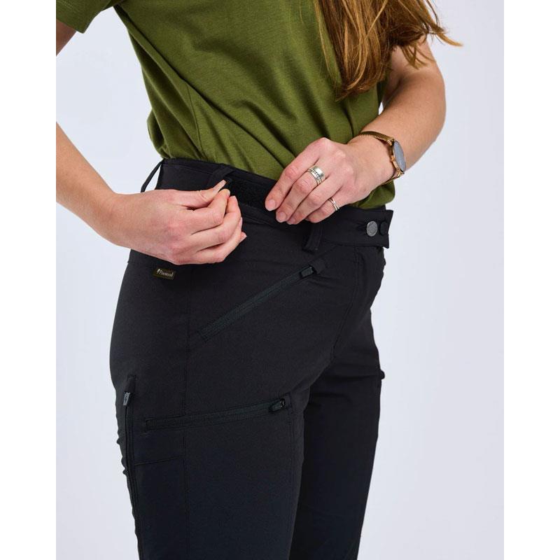 The Abisko Light Stretch trousers, stretchable in 4 directions, are flexible and highly breathable, ideal for light hikes. Its lightweight fabric makes it easy to store. Water-repellent, it features side venting zips for quick cooling. Even more practical, it has zips on the legs for easy access to shoes and buttons to adjust the leg opening. An integrated hook allows you to attach it to your laces and keep it in place during the activity. The scratch-adjustable waist makes wearing a belt unnecessary. Thanks to all these features, these stretch trousers for women are perfect for hikers and those looking for soft and stylish outdoor trousers.