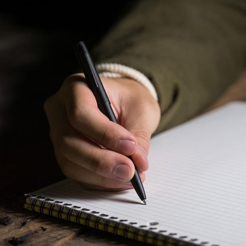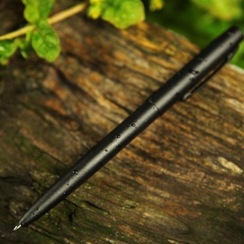 Bolígrafo con tinta negra para todo clima, de metal, sin tapa y retráctil que tiene la capacidad de escribir sobre papel húmedo y al revés.