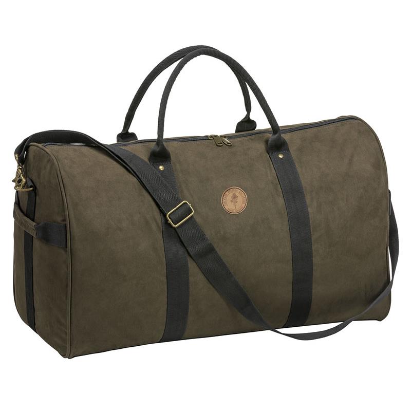 Bolso de fin de semana atemporal y elegante fabricado en lona imitación ante impermeable con detalles en latón.