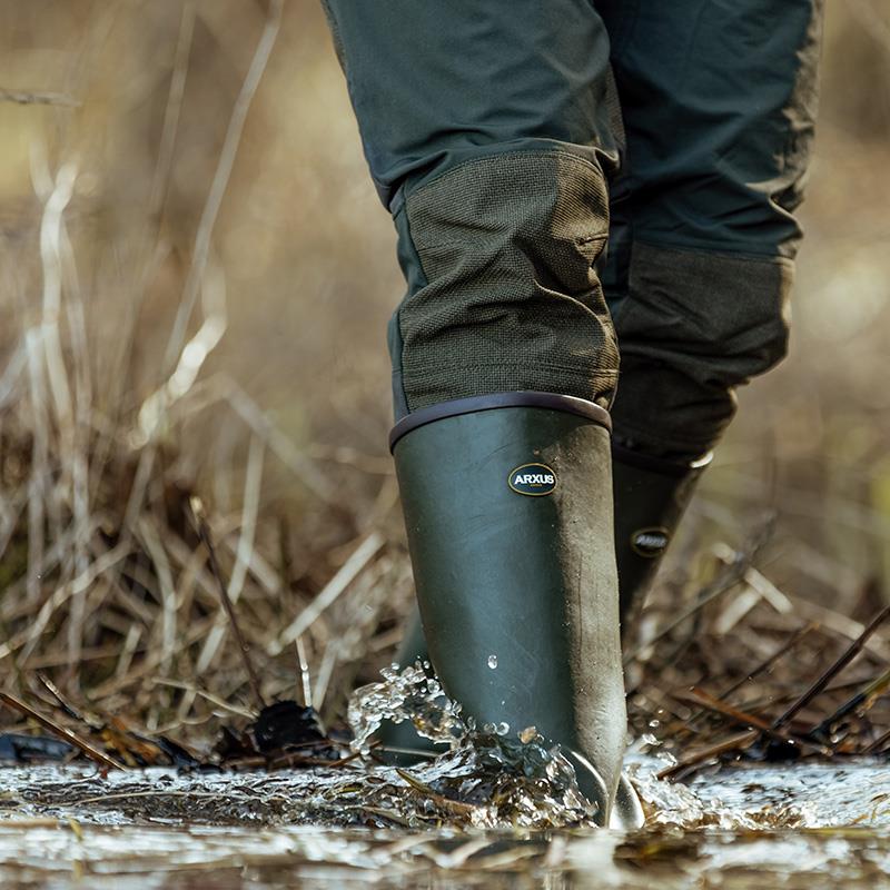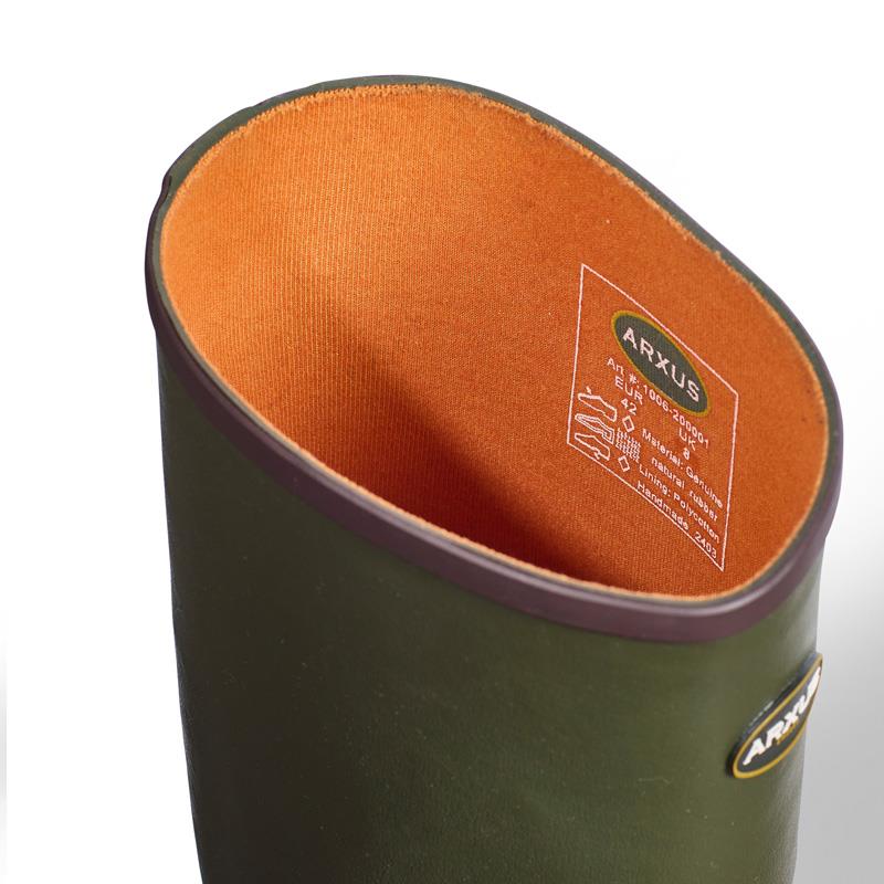 Mono está compuesto al 100% de caucho natural, común en todas las botas Arxus. El caucho natural garantiza una larga vida útil del producto y una gran resistencia a los impactos externos. Mono está forrado con un forro de polialgodón muy resistente de color naranja.