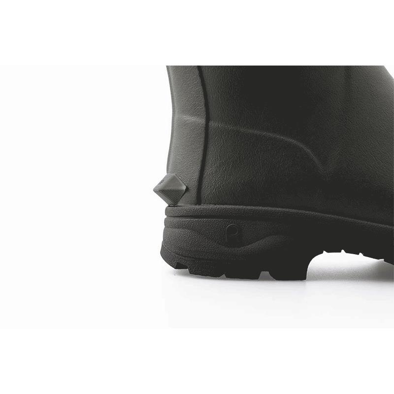 La suela exterior de caucho está reforzada gracias a su zona de flexión. La caña tiene un refuerzo para la resistencia de la bota.