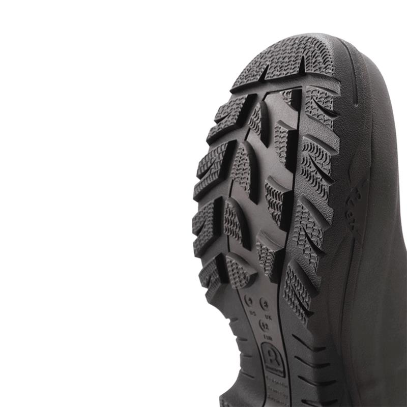 El caucho natural ofrece una gran flexibilidad para el pie. Zona de flexión R'FLEX mejorada para una mayor flexibilidad.