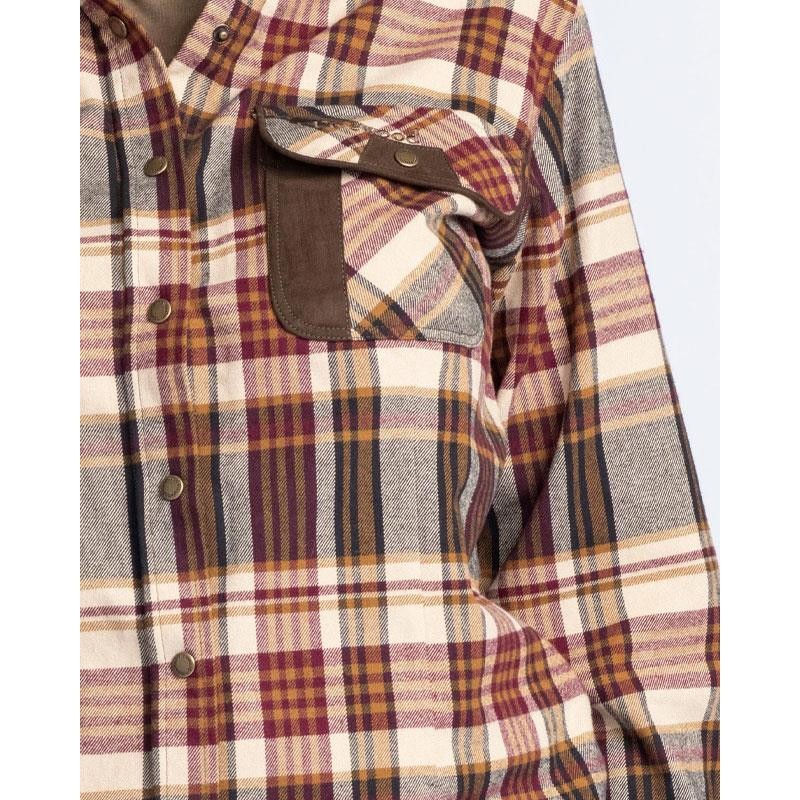 Camisa de franela exclusiva y resistente, con corte femenino y colores vivos. Cierre con botones a presión. Bolsillos en el pecho con solapa y un bolsillo de seguridad con cremallera. Los detalles en imitación ante le confieren un toque de exclusividad. Ideal para la caza y las actividades al aire libre.