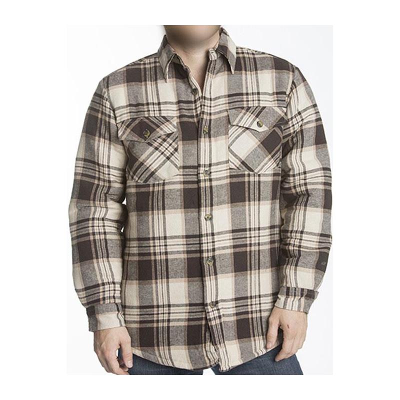 Sobrecamisa estilo "trapper" canadiense, exterior de cuadros de algodón, interior de poliéster acolchado con efecto cortavientos, 2 bolsillos de pecho con solapa.
