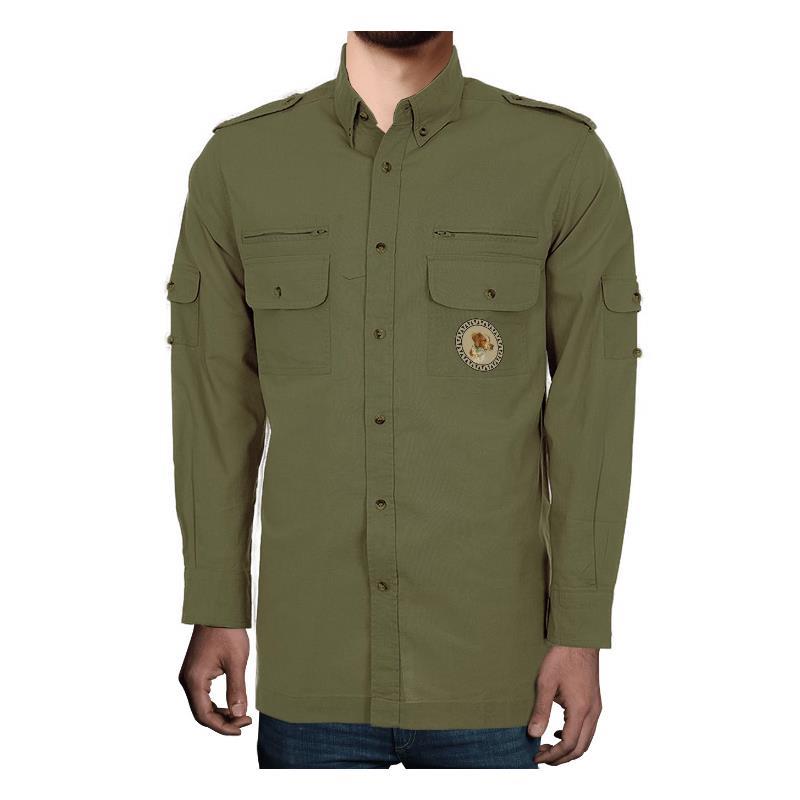 Características: • Camisa 100 % algodón, • 2 bolsillos en el pecho con cremallera, • 1 bolsillo en el pecho con botón, • 1 bolsillo en la manga. • Correas de recogida en las mangas. • Camisa BARTAVEL con parche a elección. • Camisa de caza.