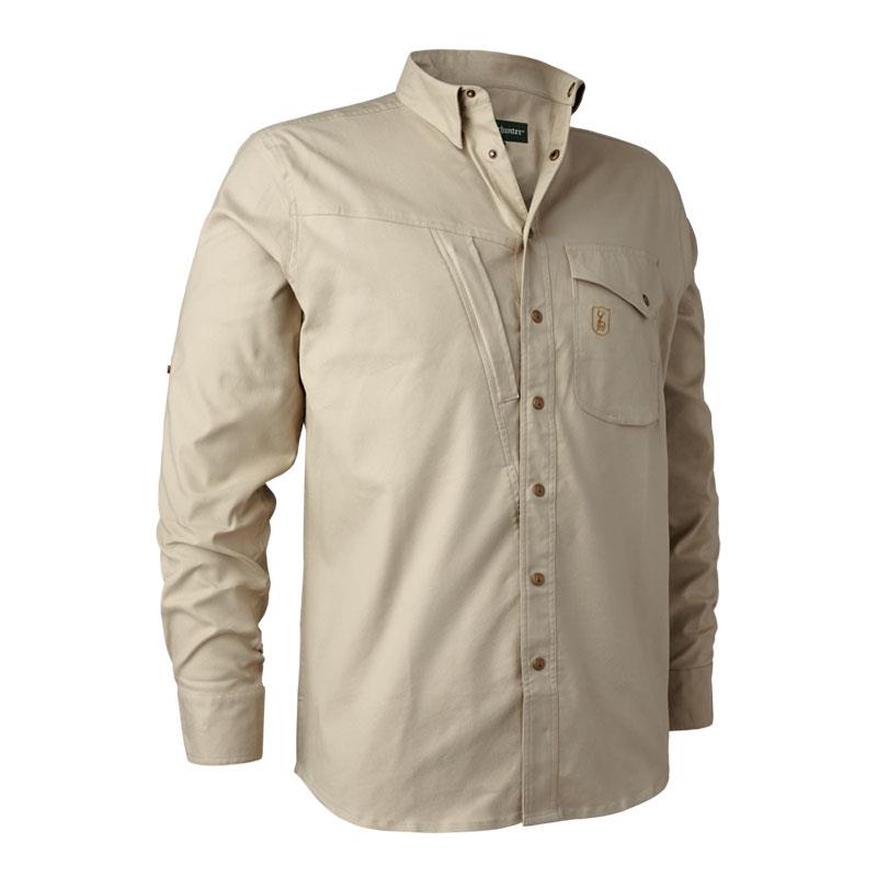 Esta camisa clásica está hecha de una mezcla de algodón y poliéster regenerado, con propiedades elásticas bidireccionales características de la ropa Deerhunter. Tiene pliegues en la espalda, para mayor comodidad y libertad de movimiento. Con dos tipos diferentes de bolsillos en el pecho con cierre seguro, un cuello con botones ocultos y correas para sujetar las mangas enrolladas, la camisa Matobo Deerhunter es tan práctica como elegante.
