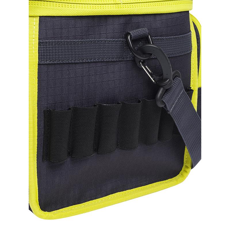 Características: • Puede contener hasta 6 cajas de 25 cartuchos • Fabricado con un material resistente • Asa de transporte • Correa de hombro ajustable • 2 bolsillos externos con cremallera YKK