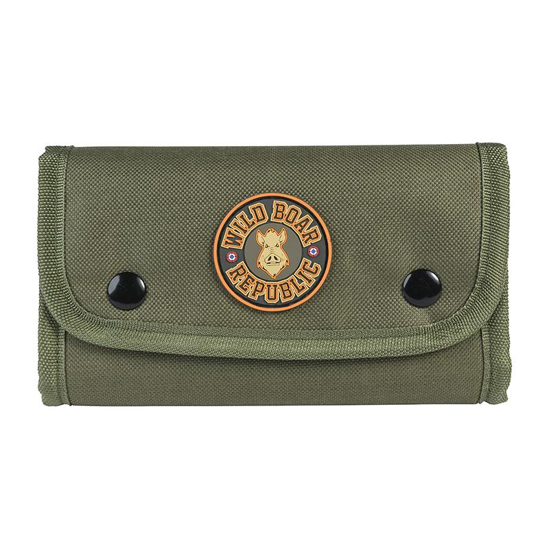 Carpeta con solapa 100 % poliéster con cierre de botones a presión que permite llevar en el cinturón 20 municiones de todos los calibres rayados.