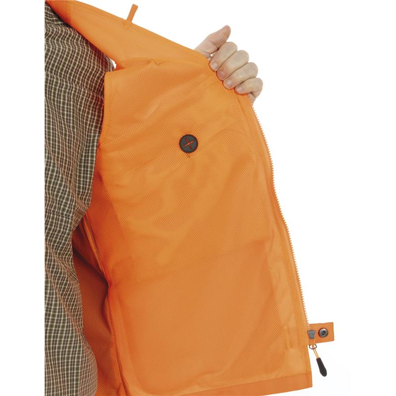 • 2 bolsillos en el pecho con cremallera para radio / GPS y puertos de conexión internos para auriculares.