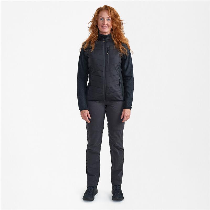 Optimiza la adaptabilidad de tu armario con la chaqueta con cremallera Lady Moor, que se transforma en chaleco para mayor versatilidad. El frente acolchado e aislante de la chaqueta está tratado con un acabado repelente al agua sin fluorocarbono, mientras que el tejido de punto elástico en los lados, la espalda y las mangas aseguran un confort óptimo y un excelente ajuste. Para completar el diseño, la chaqueta cuenta con bolsillos prácticos y bandas elásticas en las sisas, los puños y el borde inferior de la chaqueta. Para adaptarte perfectamente a los cambios de temperatura, combina la chaqueta con el pantalón zip-off Lady Slogen. Optimiza tu armario de caza y actividades al aire libre con la chaqueta con cremallera Lady Moor, una elección práctica para las temperaturas cambiantes de la primavera y el verano.