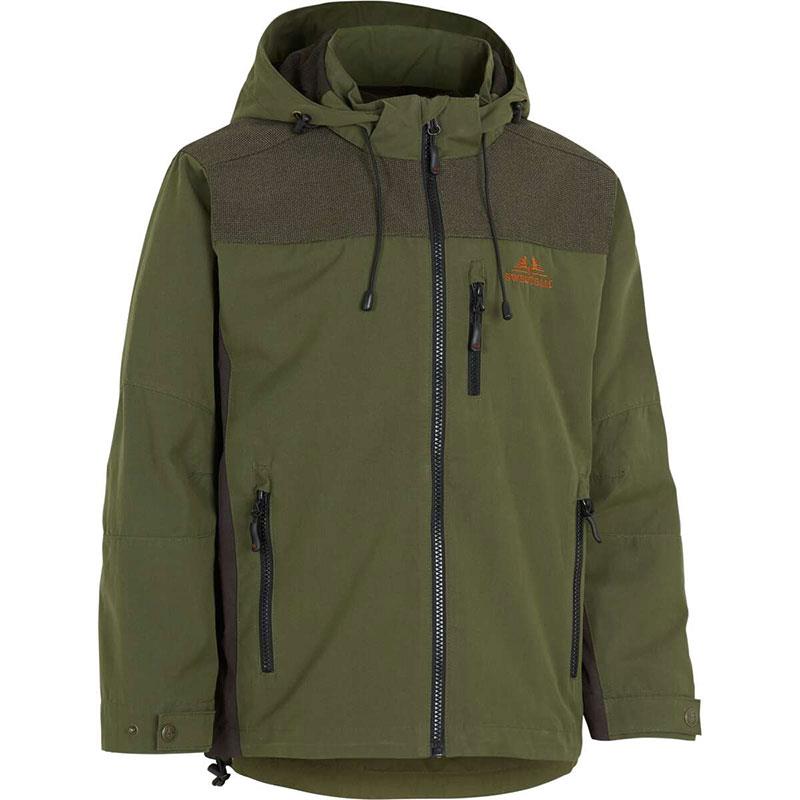 Chaqueta de caza junior cortavientos en nuestra popular familia Lynx. Esta chaqueta no tiene membrana para una mejor transpirabilidad y un peso ligero. El tejido es resistente al agua. Los hombros están reforzados con un material muy resistente. Tejido para el cuerpo en mezcla de algodón con acabado encerado.
