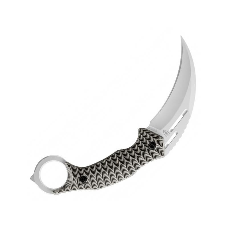 Características : • Material de la hoja (acero) : Inoxidable • Longitud de la hoja : 100 mm • Material del mango : G10 • Longitud abierta : 200 mm • Peso : 220 g