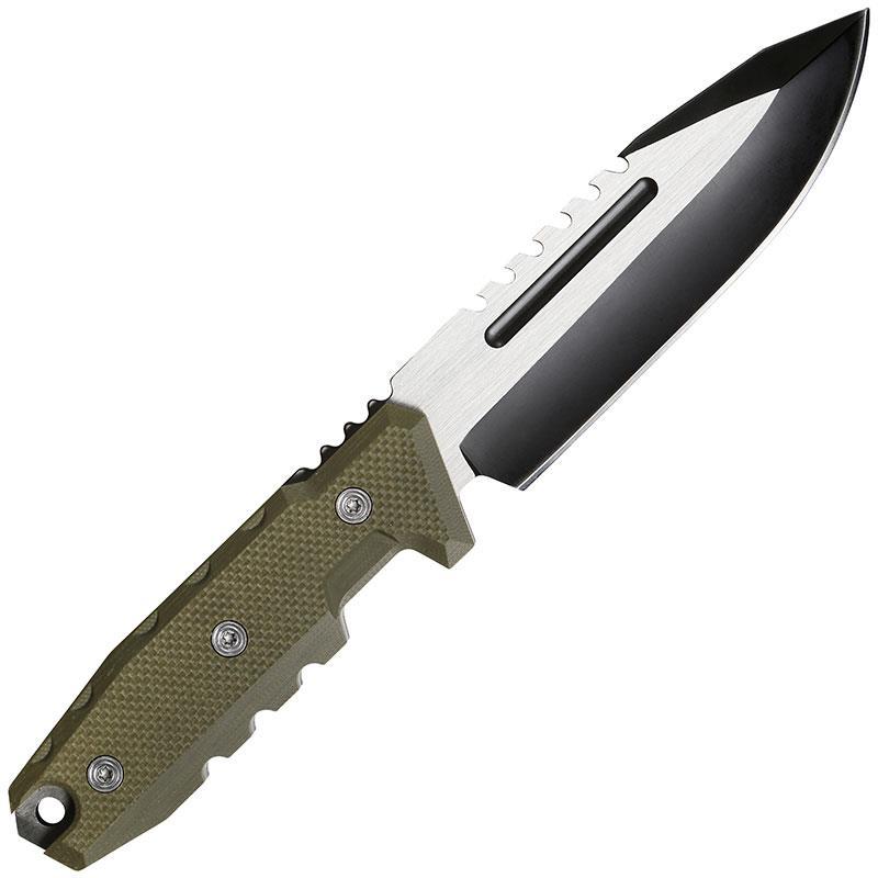 • Navaja recta con mango de alta resistencia y agarre reforzado. • Hoja de 10 cm en acero 440A de carbono/cromo. • Se entrega en caja con funda de poliéster.