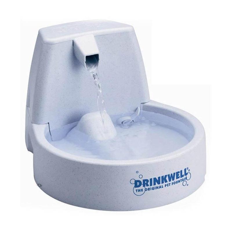 Beber más para una mejor salud: ¡ahí tiene la opinión de los veterinarios! • El mejor medio de llegar es utilizar una de las fuentes Drinkwell. • El agua de la fuente se oxigena continuamente gracias a su sistema patentado de flujo libre del agua. • Un filtro a carbón de gran importancia elimina el gusto y los olores. Lavable al lavaplatos. • Un filtro recoge los pelos y otras partículas antes de que alcancen el motor. • La protección reduce las repercusiones vinculadas al flujo del agua. • Débito del agua regulable - Sistema bajo tensión (12V). • Bomba sumergible que ofrece un funcionamiento silencioso. • Tapa bloqueable para evitar que se retira por inatención • Filtro de carbón reemplazable (RF6C-INTL-19). • Capacidad 1.5 litros